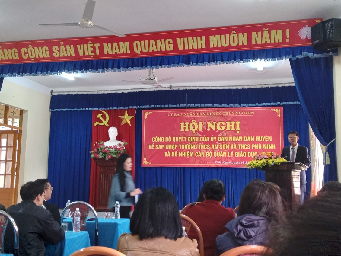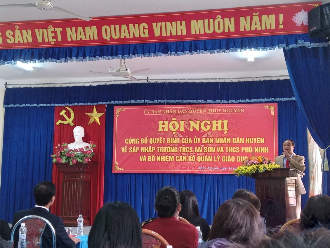 Lễ công bố quyết định diễn ra chiều ngày 16/02/2023 tại trụ sở trường THCS An Sơn. Về dự Hội nghị các đồng chí lãnh đạo huyện, Đ/C Uông Minh Long, Đ/C Nguyễn Thành Lung và các đồng chí lãnh đạo của hai xã, BGH hai trường Phù Ninh, An Sơn, các bậc phụ huynh học sinh.