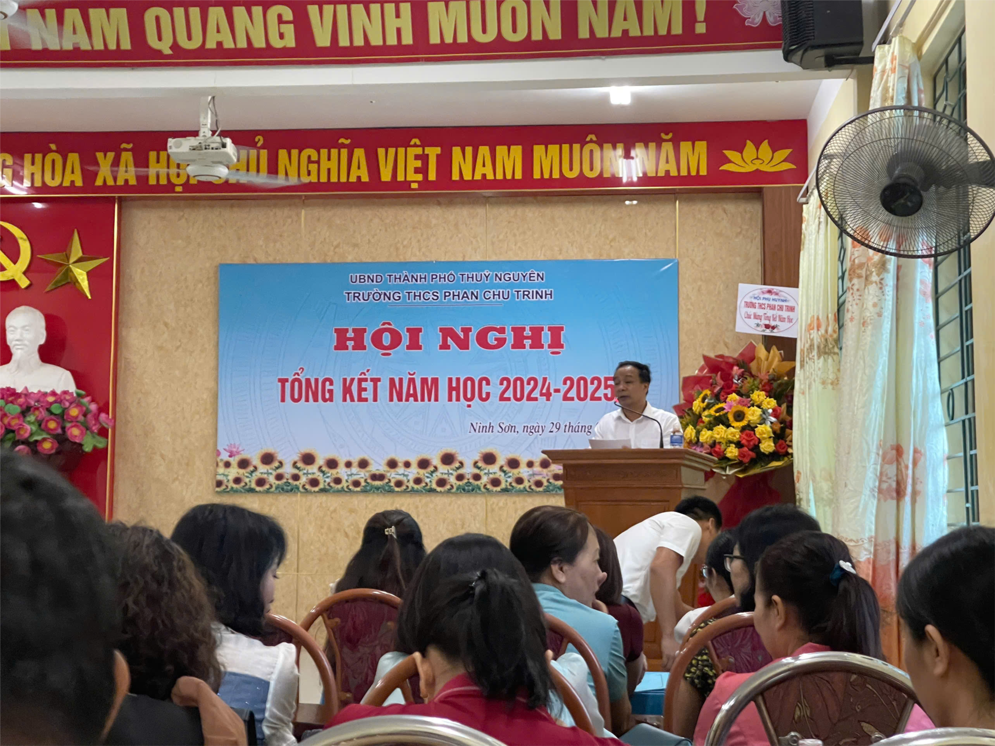 Trong buổi tổng kết thầy hiệu trưởng đã chỉ ra những ưu điểm cần phát huy và tồn tại cần khắc phục trong năm tới.