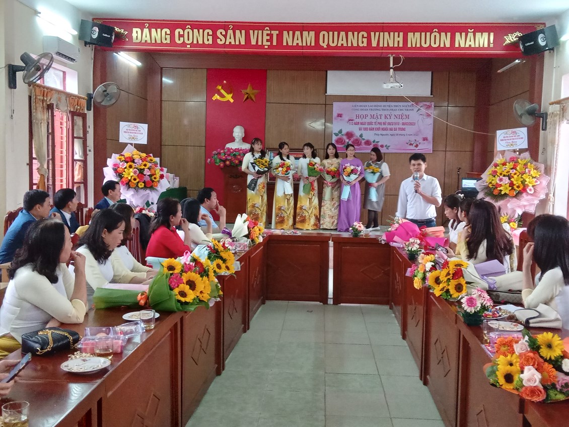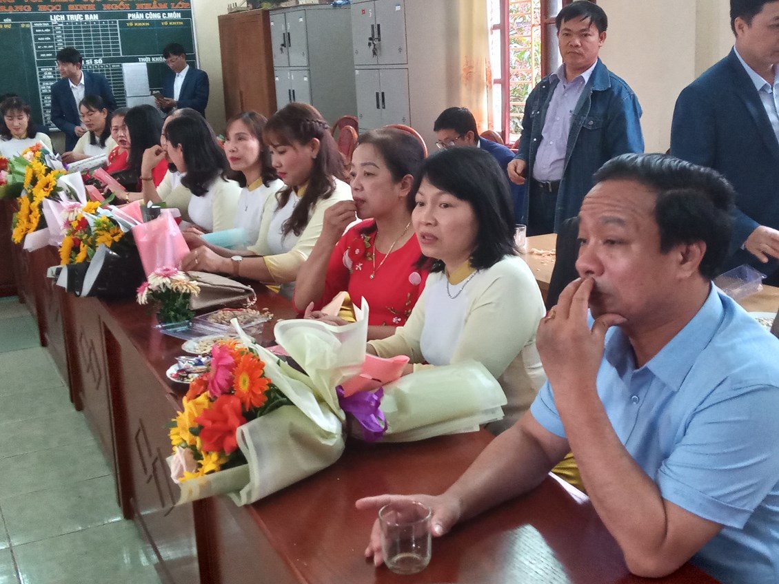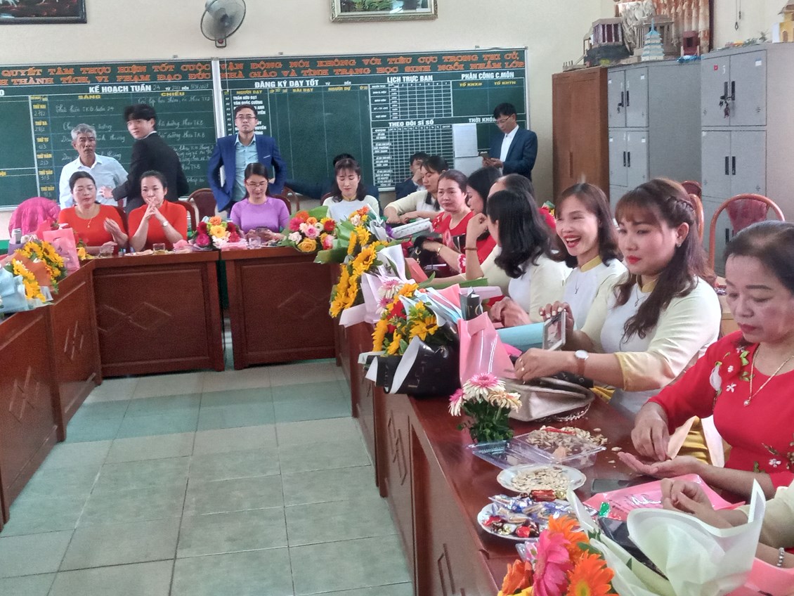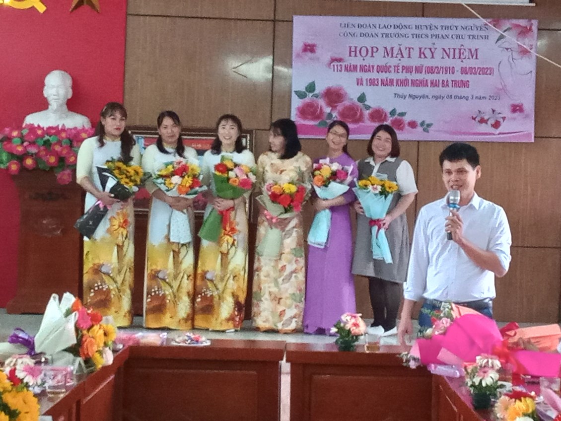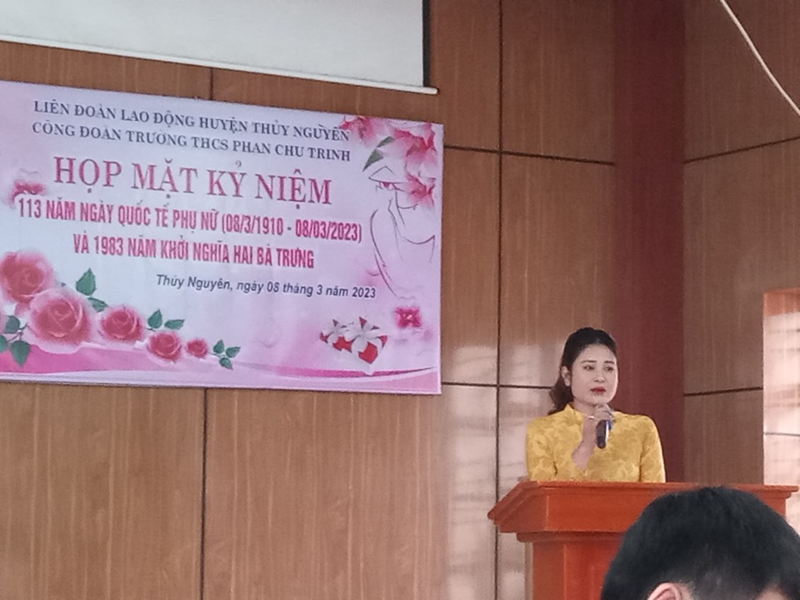 Cô Nguyễn Thị Cẩm (hội trưởng Hội cha mẹ học sinh) phát biểu chúc mừng và tậng quà toàn thể giáo viên nhà trường. Buổi lễ kỷ niệm thành công tốt đẹp, Chúc cho các chị em phụ nữ luôn mạnh khỏe, xinh đẹp thanh công trong công việc, hạnh phúc trong tinh yêu và trọn vẹn trong cuôc sống.