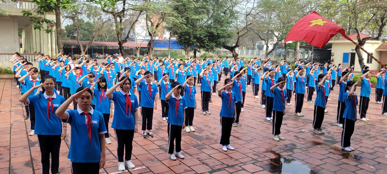 Sinh hoạt dưới cờ có thầy Hoàng Tôn Quyền - Bí thư chi bộ - Hiệu trưởng nhà trường. Thầy Nguyễn Sỹ Hiệp - phó hiệu trưởng nhà trường, cùng các thầy cô giáo trong Hội đồng sư phạm nhà trường.